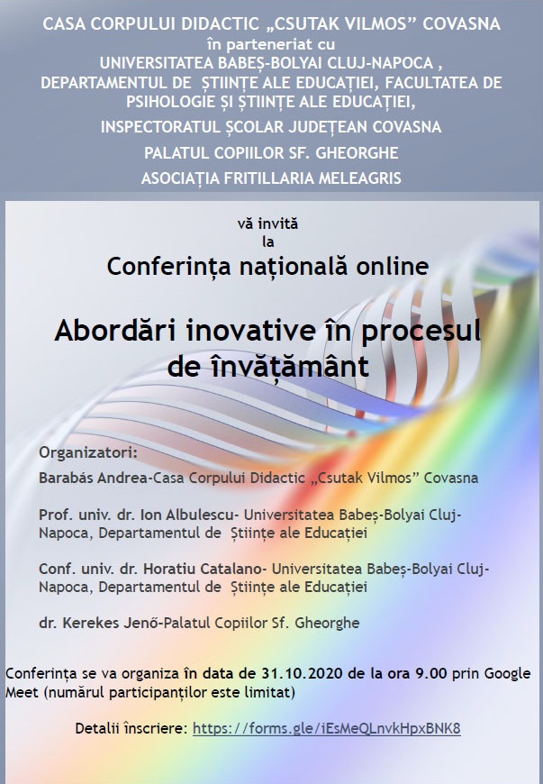 Casa Corpului Didactic "Csutak Vilmos" Covasna anunță cadrele didactice participante la programele de formare continuă Seria 3 (perioada septembrie-octombrie), că începând din data de 01.11.2020 se eliberează adeverințele de participare pentru programele: